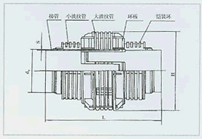 ZP 直管压力平衡型膨胀节由一个波纹管和两个端接构成其他零件组成。它通过波纹管的柔性变形来吸收管线轴向位移(也有少量横向、角向位移),端接管或直接与管道接管焊接,或焊上法兰再与管道法兰联接。膨胀节上的小拉杆主要是运输过程中的刚性支撑或作为产品预变形调整用,它不是承力件。